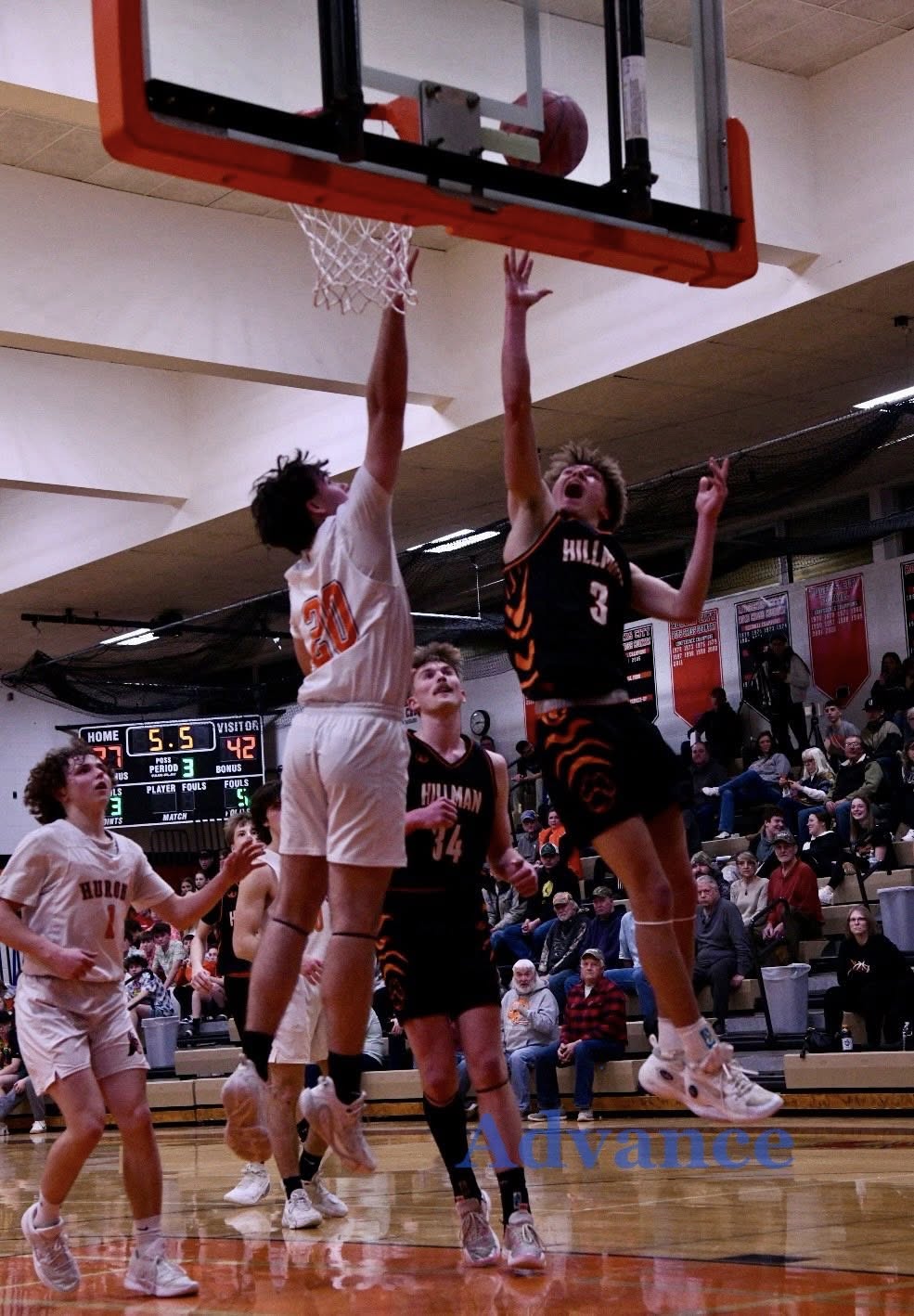 In the second game of the doubleheader, Hillman took an early lead against host Rogers City and the Hurons had to fight from behind the rest of the way. They took their shots, but it was too much to overcome as the orange and black lost to the Tigers by a final score of 59-45.
